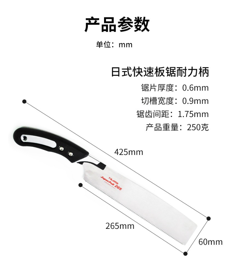 田岛(TAJIMA)1103-2463 快速板锯耐力柄265 手工刀锯木工锯伐木锯手锯园林锯子