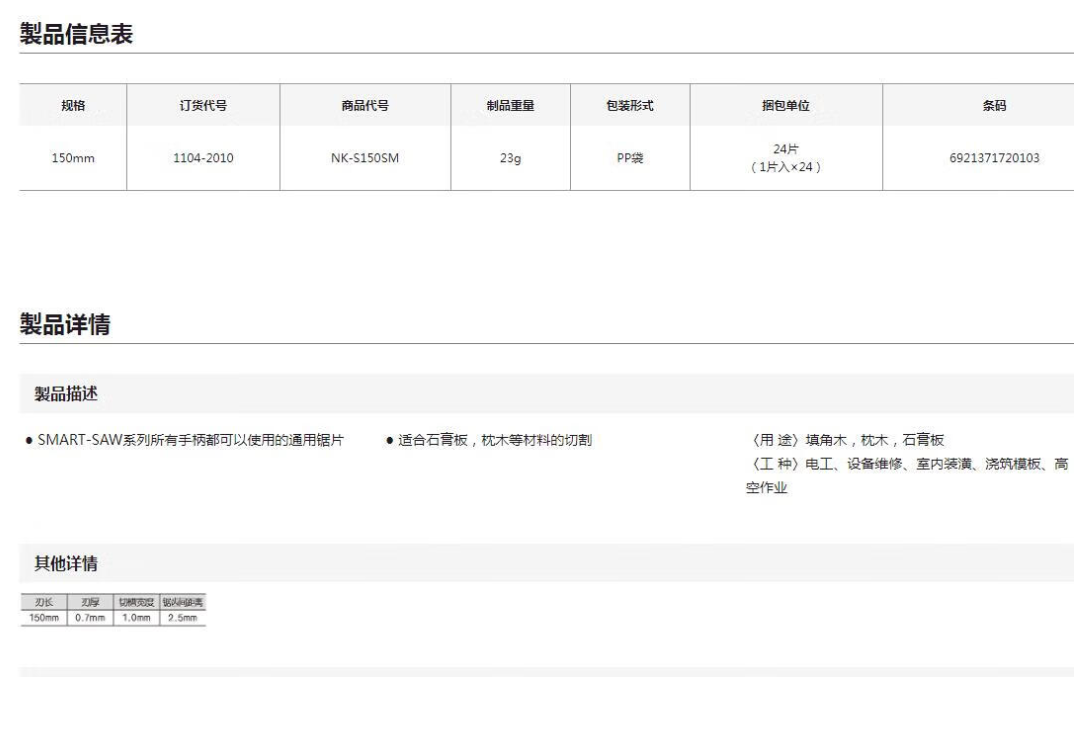 田岛(TAJIMA)SMART-SAW拉锯片150 石膏木材切割用 1104-2010