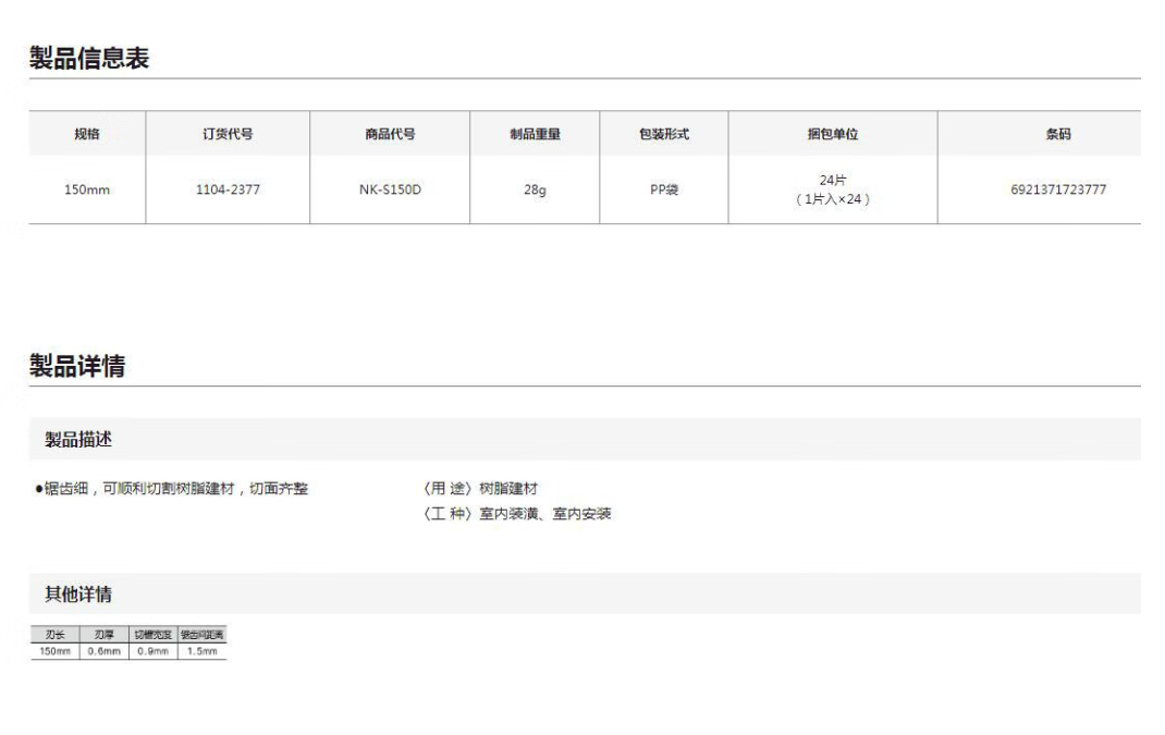 田岛(TAJIMA)SMART-SAW拉锯片150 树脂建材切割用 1104-2377