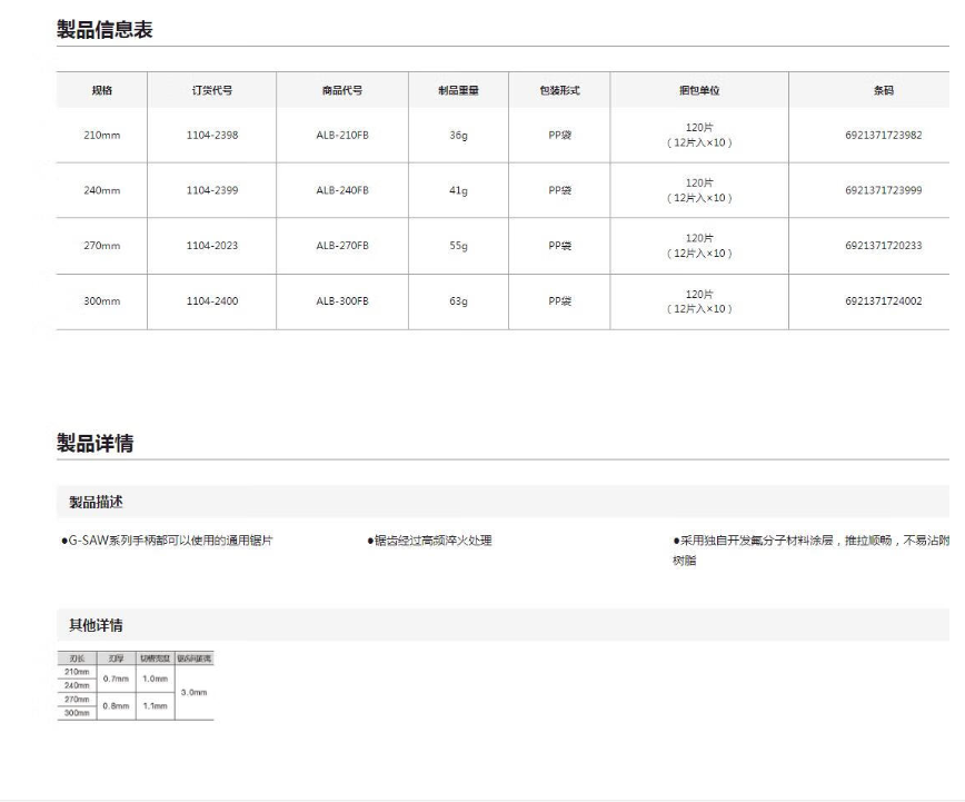 田岛(TAJIMA)G-SAW氟膜处理黑色拉锯片240 1104-2399