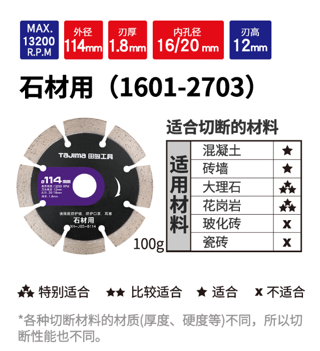 田岛TaJIma超薄金刚石锯片瓷砖切割片玻化砖切割片开槽机切割片混泥土切割片大理石切割片 1601-2703