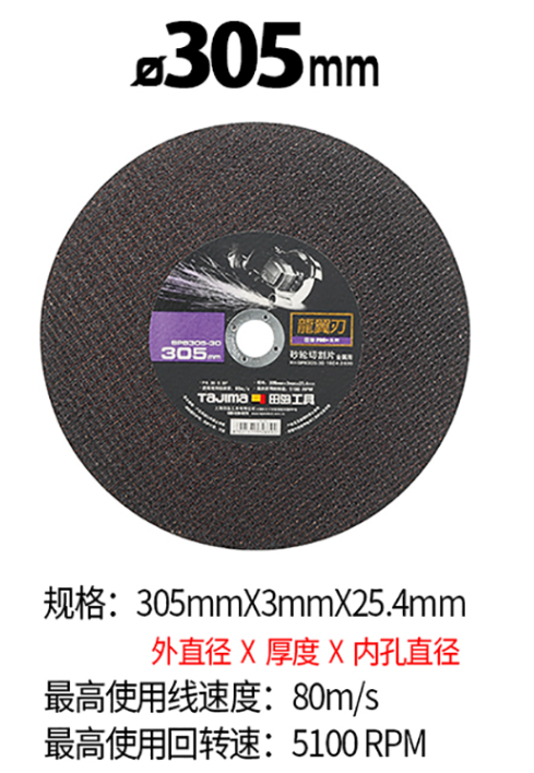 田岛砂轮切割片蝮蛇型不锈钢铁金属角工业级耐磨砂轮片 305mm【加强型】 1604-2839