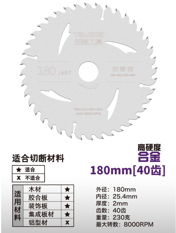 田岛(TaJIma)木工圆锯片180X2.0X40TX25.4XB-1605-2724