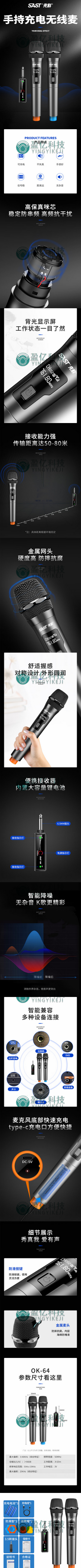 先科可充电锂电池无线万能麦克风话筒舞台专业ktv全民k歌唱歌演讲会议户外音响音箱电视车载通用OK-64双支