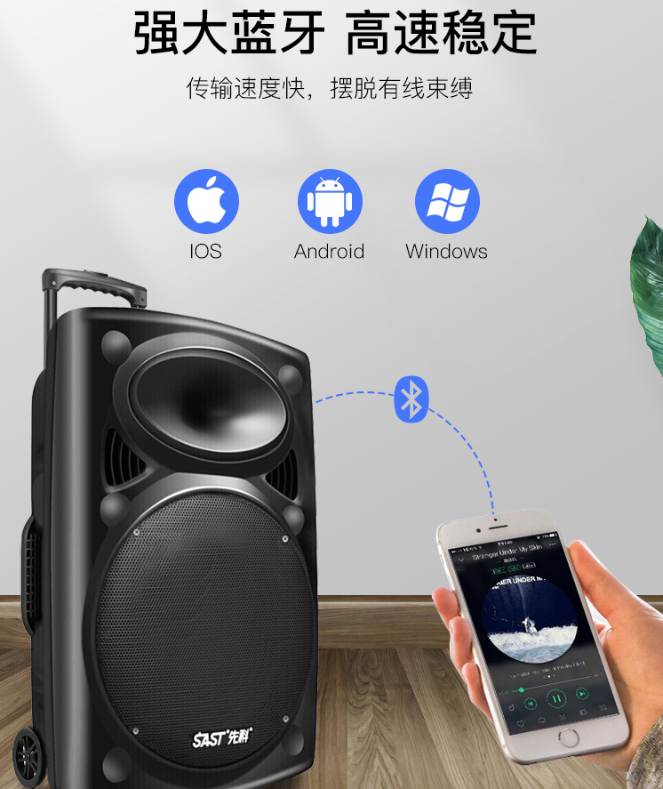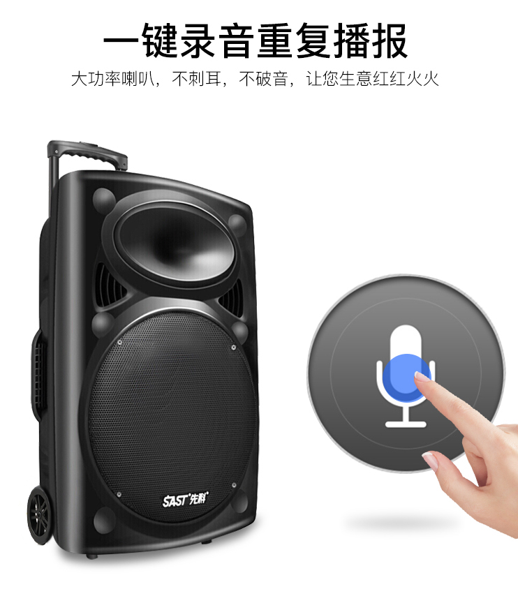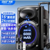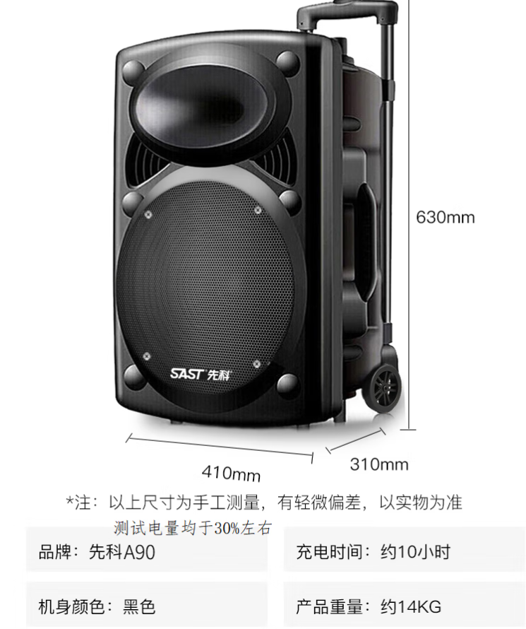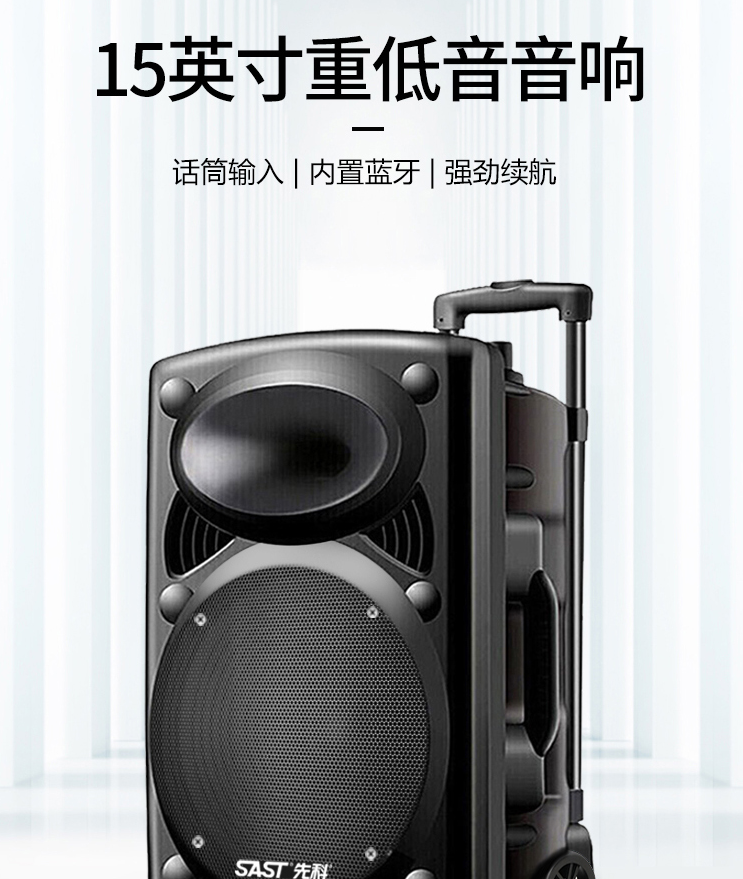 先科A90 15英寸广场舞音响户外大功率移动拉杆音箱无线蓝牙大音量K歌专用便携式配双话筒麦克风