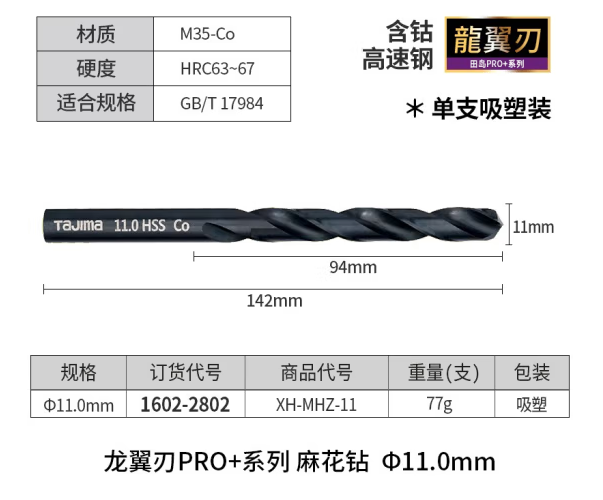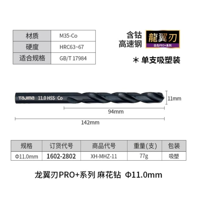 田岛(TAJIMA)日本田岛工具直柄麻花钻头高速钢钻头麻花钻头打孔钢铁含钴钻头钻 麻花钻11 mm1602-2802