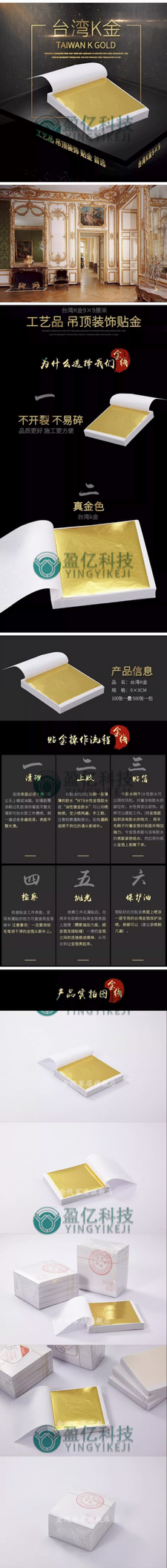 金线金箔纸贴纸台湾K金绘画仿金铂墙纸装修家具金泊纸片装饰9x9cm K金约100张