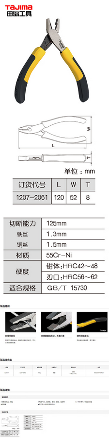 田岛(TAJIMA)迷你钢丝钳 1207-2061
