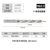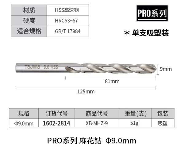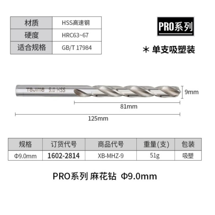 田岛(TAJIMA)日本TAJIMA直柄麻花钻头高速钢钻头麻花钻头打孔钢铁含钴钻头钻铁 麻花钻9mm 1602-2814