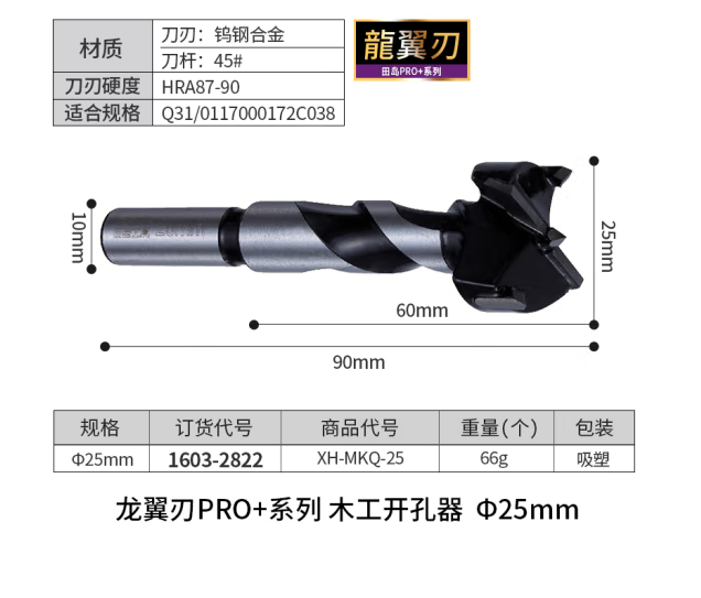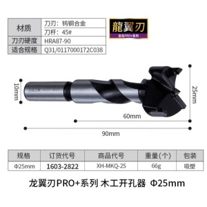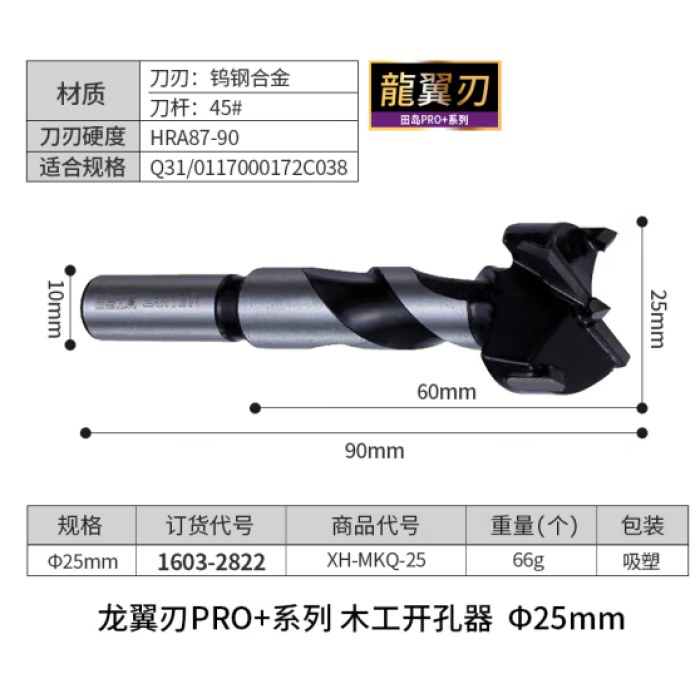 田岛木工开孔器钻头打孔扩孔器钨钢合金钻孔器打孔钻头田岛Tajima工具 龙翼刃25mm木工开孔器1603-2822