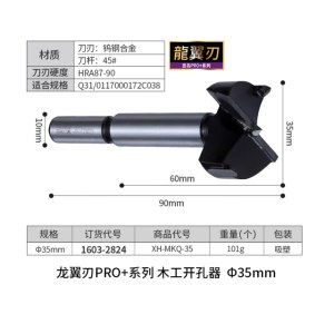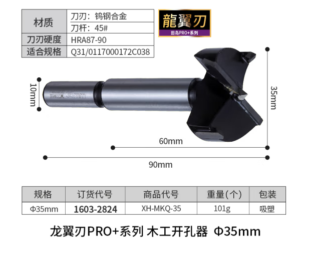田岛木工开孔器钻头打孔扩孔器钨钢合金钻孔器打孔钻头田岛Tajima工具 龙翼刃35mm木工开孔器1603-2824