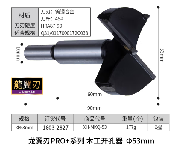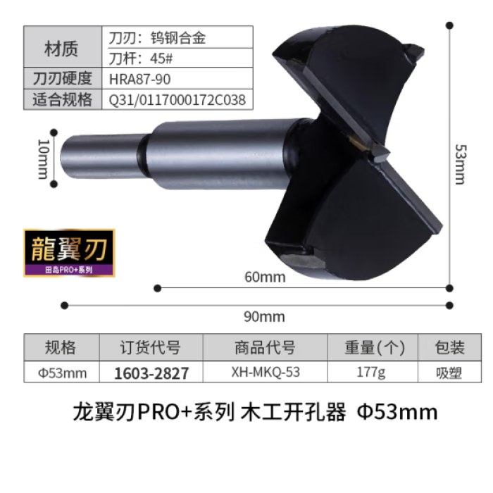 田岛木工开孔器钻头打孔扩孔器钨钢合金钻孔器打孔钻头田岛Tajima工具 龙翼刃53mm木工开孔器1603-2827