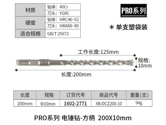 田岛(TAJIMA)日本TAJIMA电锤钻头冲击方柄钻头混凝土穿墙钻头打孔电镐凿子电钻 电锤钻方柄200 x10mm1602-2771