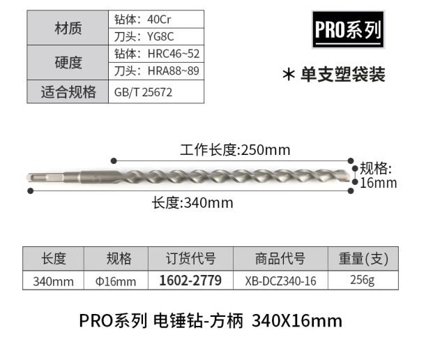 田岛(TAJIMA)日本TAJIMA电锤钻头冲击方柄钻头混凝土穿墙钻头打孔电镐凿子电钻 电锤钻方柄340 x16mm1602-2779