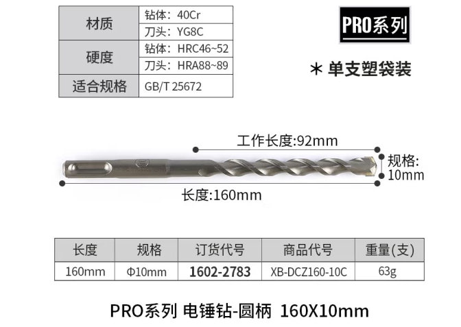 田岛(TAJIMA)田岛电锤钻头冲击钻头圆柄钻头混凝土穿墙钻头打孔电镐凿子电钻头 160X10mm 1602-2783