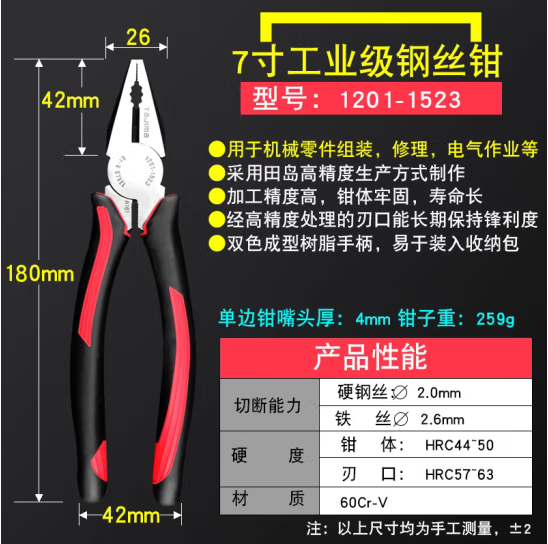 田岛(TAJIMA)超级钢丝钳180 1201-1523