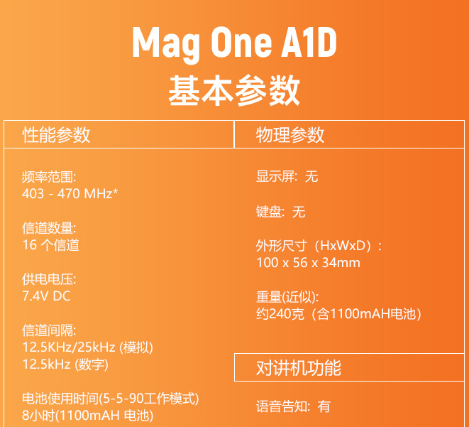 摩托罗拉(Motorola)MAG ONE A1D 数字对讲机 坚固抗摔 加密抗干扰大功率远距离商用民用无线手持电台(只)