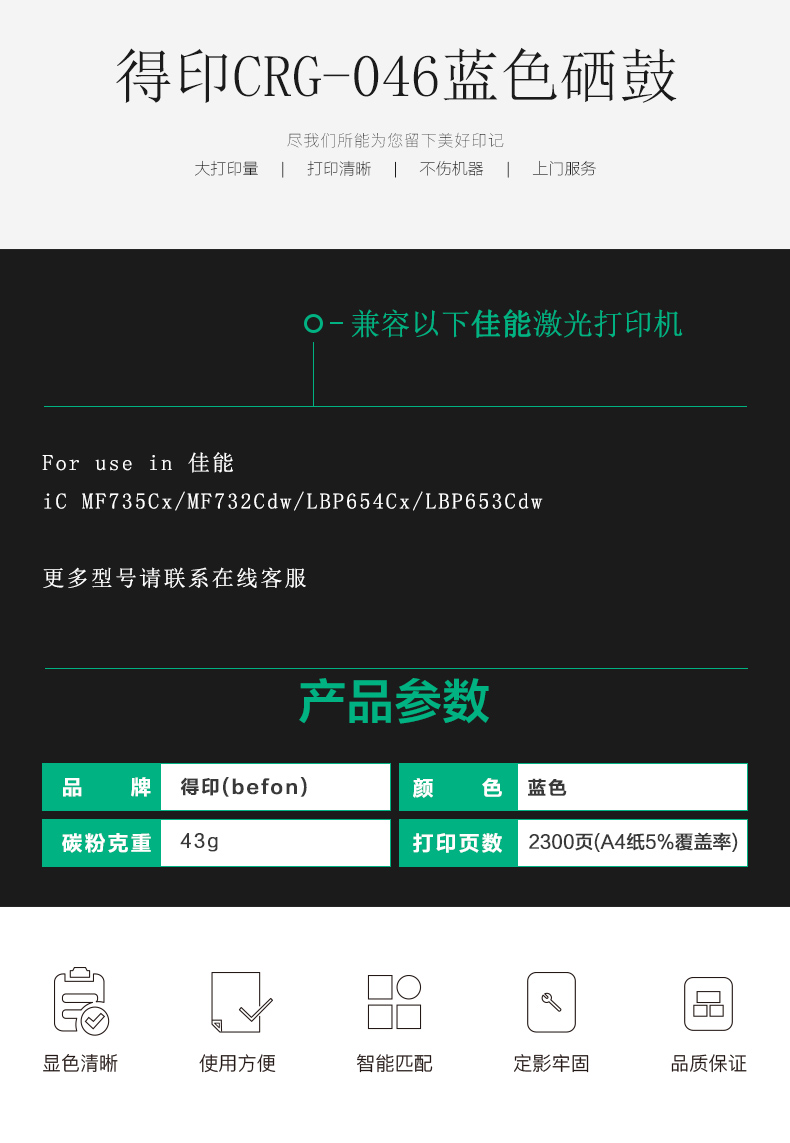 befon得印 CRG-046 标准容量 蓝色硒鼓(适用佳能 iC MF735Cx/MF732Cdw/LBP654Cx/LBP653Cdw)