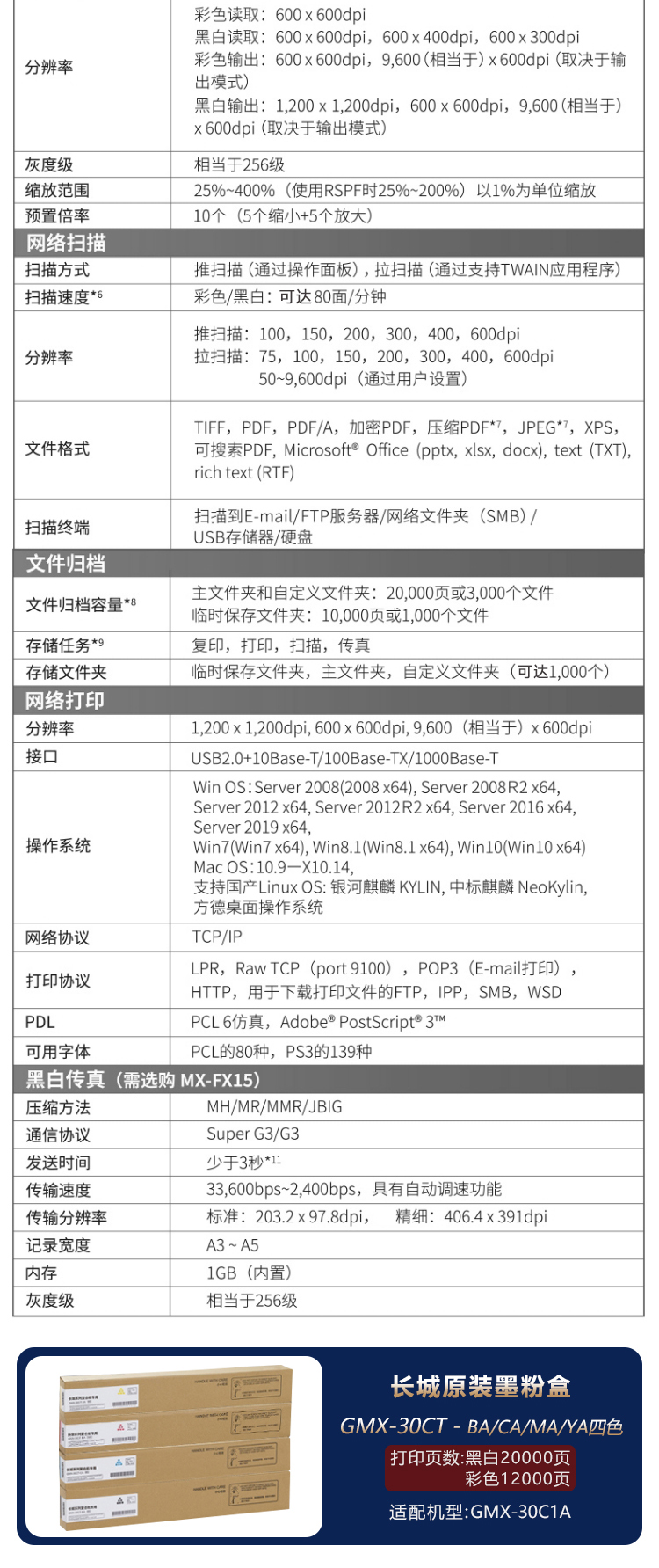 | A4复印速度(彩色) | 30 |