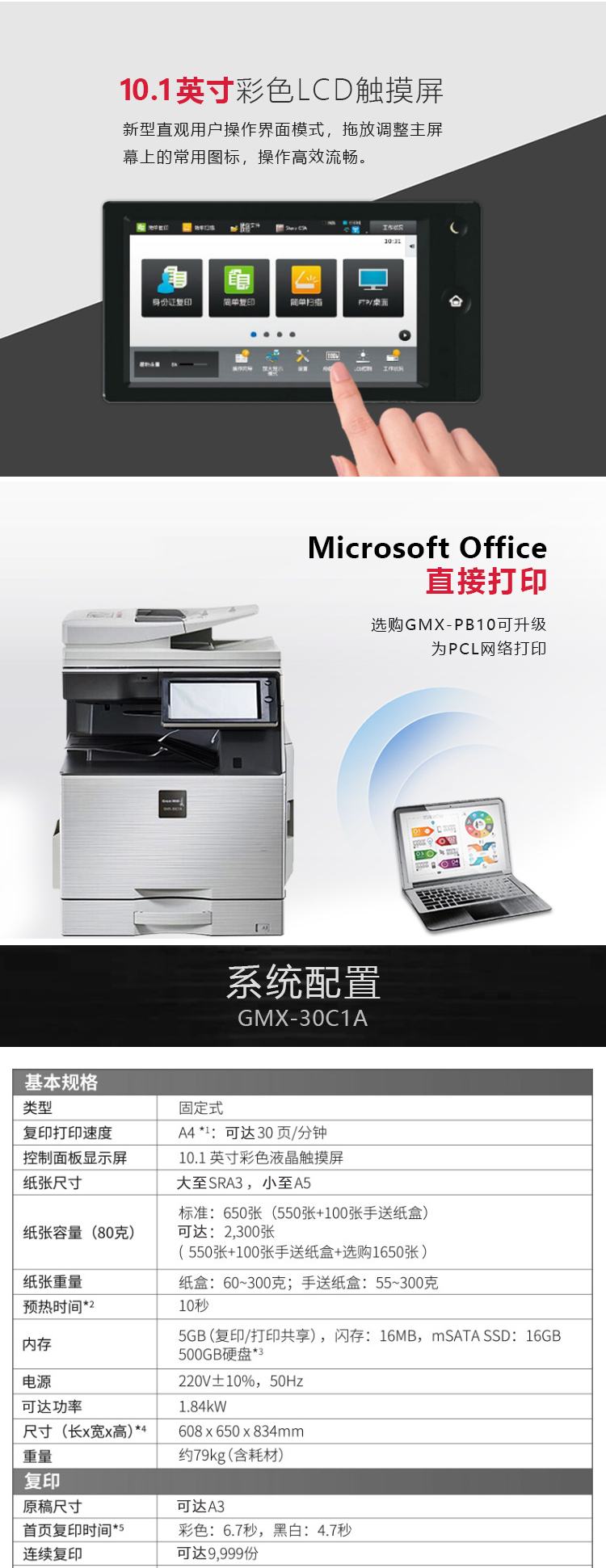 | A4复印速度(黑白) | 30 |