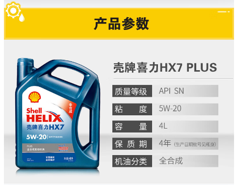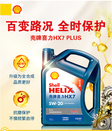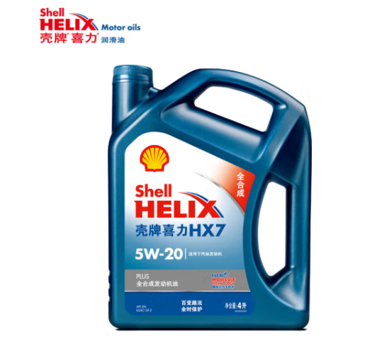 壳牌(Shell)蓝喜力全合成发动汽机油 蓝壳HX7 PLUS 5W-20 API SN级4L养车保养