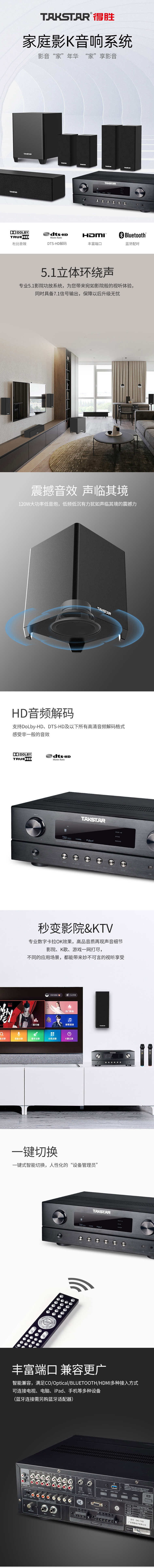 得胜(TAKSTAR) EKC-3TH 5.1家庭影院音响系统 中置音箱1只+环绕音箱2只+前置音箱2只 计价单位:套