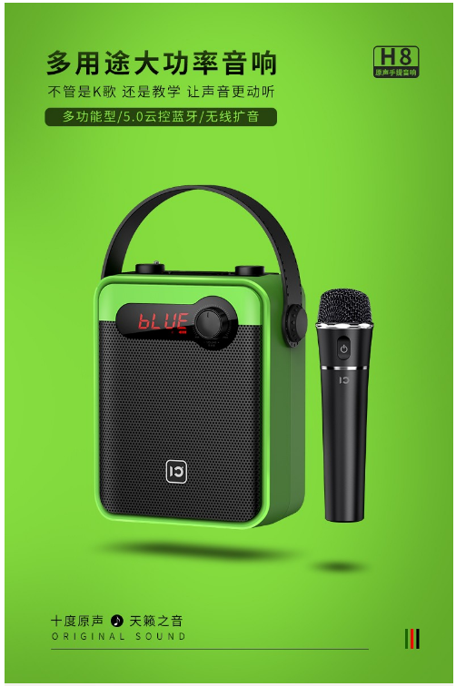 十度(ShiDu) H8音响户外便携式手提广场舞K歌大功率蓝牙音箱无线扩音器带无线话筒显示屏 经典黑广场舞版