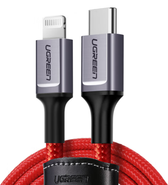 绿联(UGREEN)20309/US298 Type-C转Lightning 铝壳数据线快充线 1米红色
