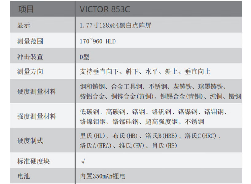 胜利仪器(VICTOR)里氏硬度计 金属铁钢 便携式硬度测试仪VC853C