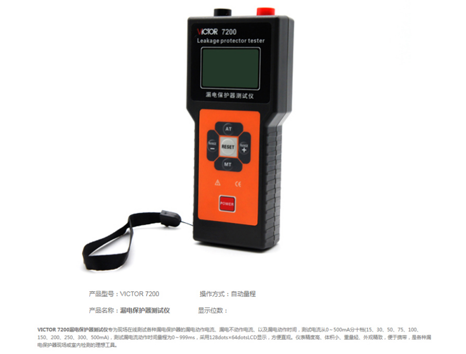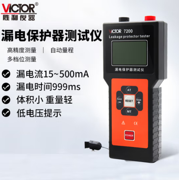 胜利仪器(VICTOR)漏电保护器测试仪 0至500mA十档测试电流 漏电保护开关测试仪 VC7200