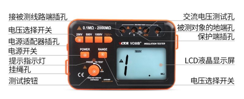 胜利仪器(VICTOR)数字兆欧表 绝缘电阻测试仪 1000/5000/2500V高压摇表 VC60F