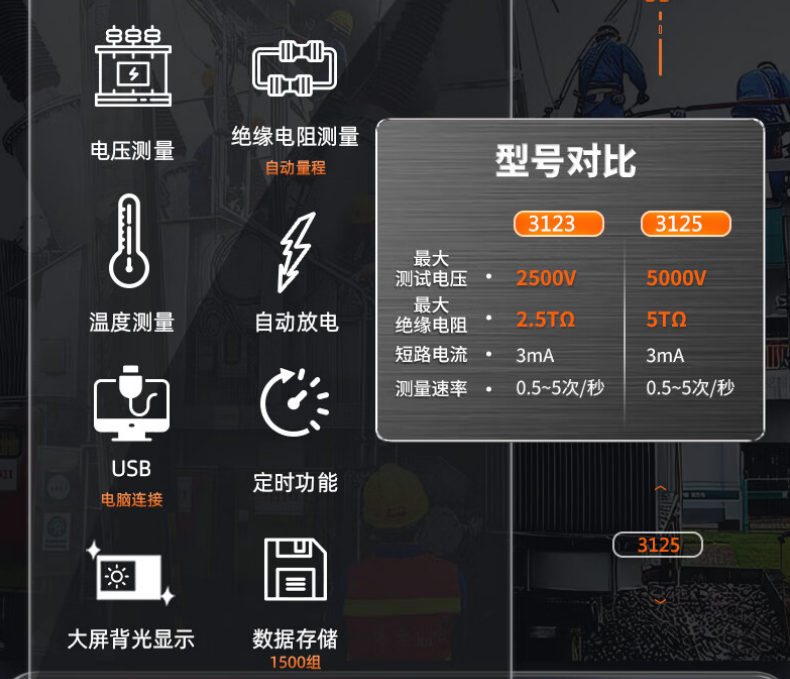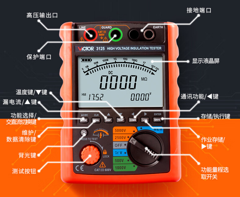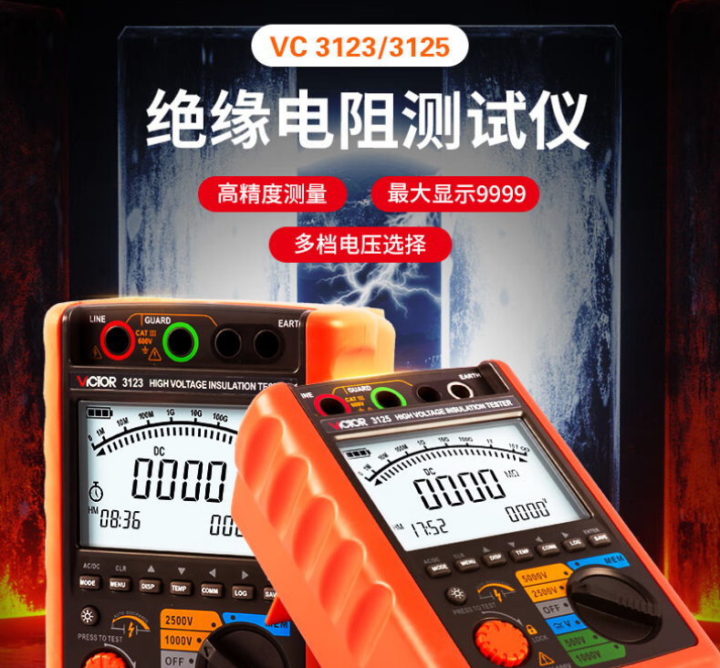 胜利仪器(VICTOR)数字绝缘电阻测试仪 兆欧表 高压兆欧表5000V VC3125