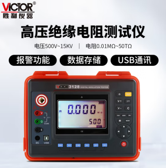 胜利仪器(VICTOR)兆欧表 高压绝缘电阻测试仪 15KV连续可调 数字摇表 绝缘电阻表 绝缘表 VC3128