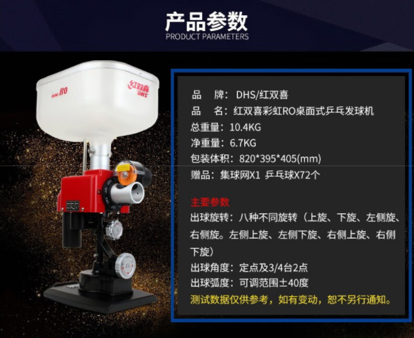 红双喜(DHS)乒乓发球机桌面式RO 含乒乓球集球网