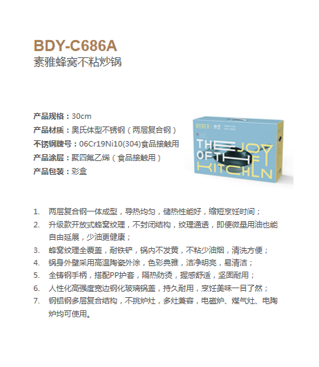 博堡 BDY-C686A 素雅蜂窝不粘炒锅