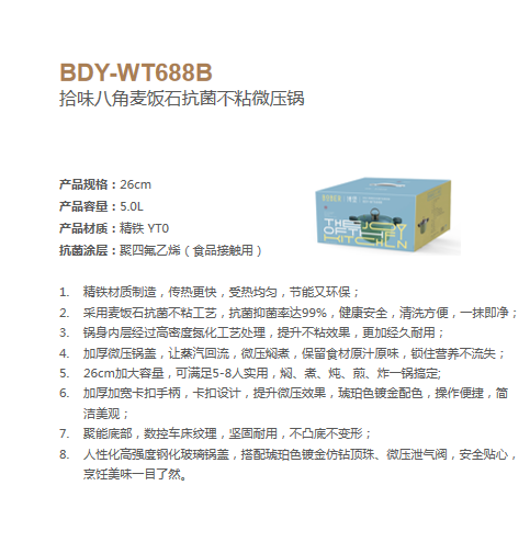 博堡 BDY-WT688B 拾味八角麦饭石抗菌不粘微压锅