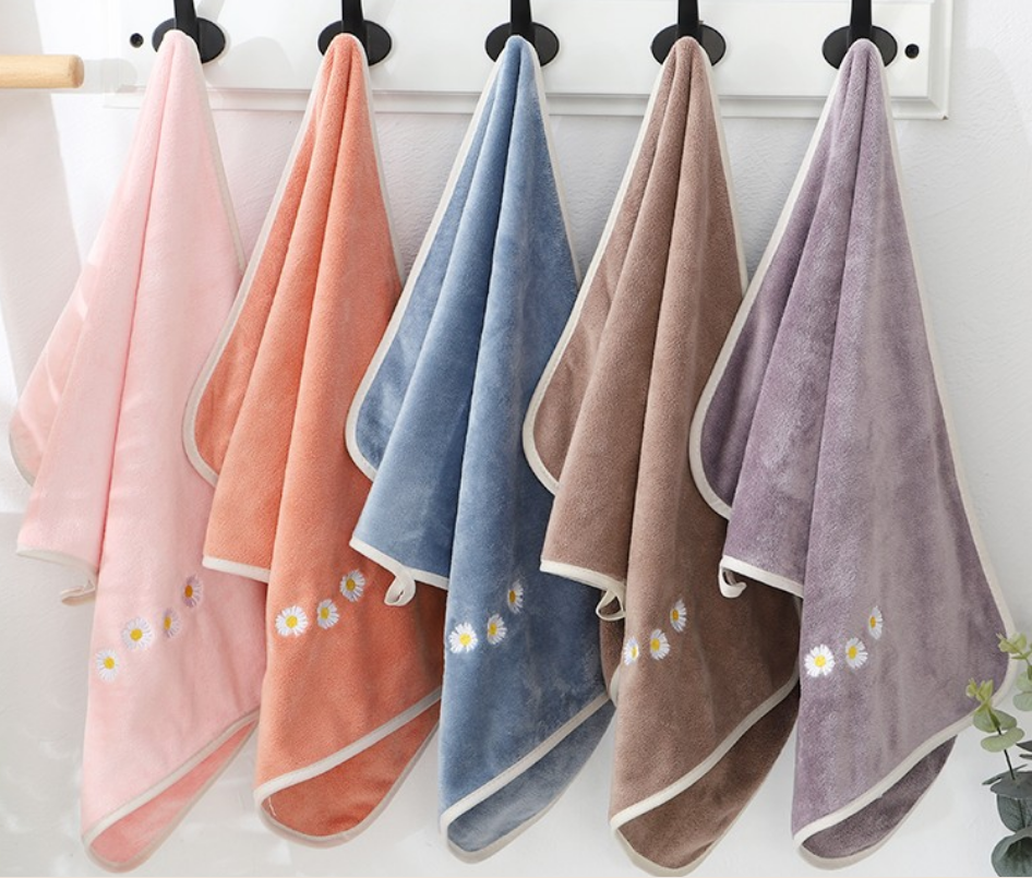 沐凡 毛巾洗脸毛巾带挂绳 小雏菊四条装(蓝+桔+粉+咖)75*35cm