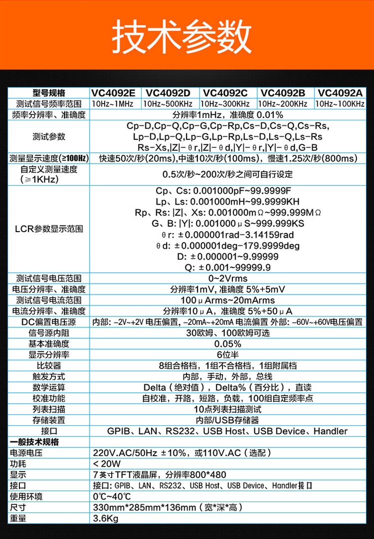 胜利仪器(VICTOR)LCR 数字电桥测试仪 元器件 电容 电感 电阻测量仪 VC4092C