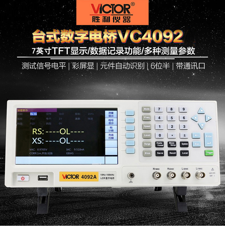 胜利仪器(VICTOR)LCR 数字电桥测试仪 元器件 电容 电感 电阻测量仪 VC4092D