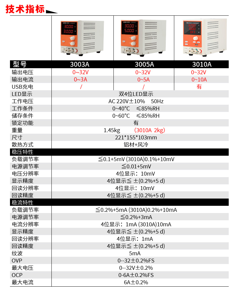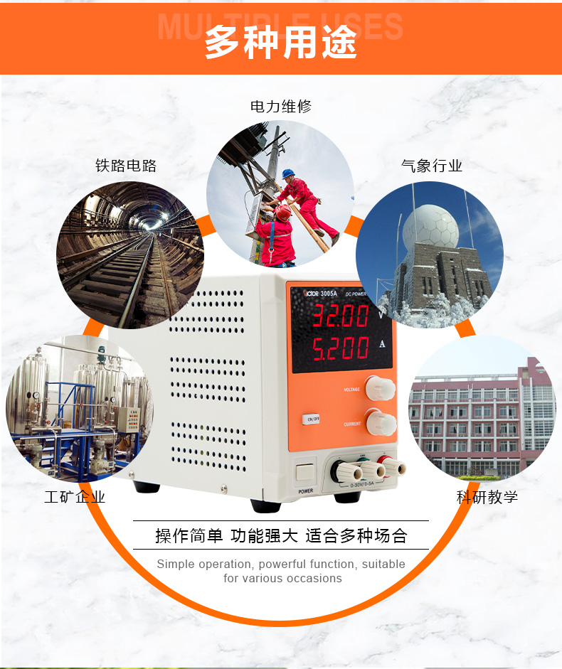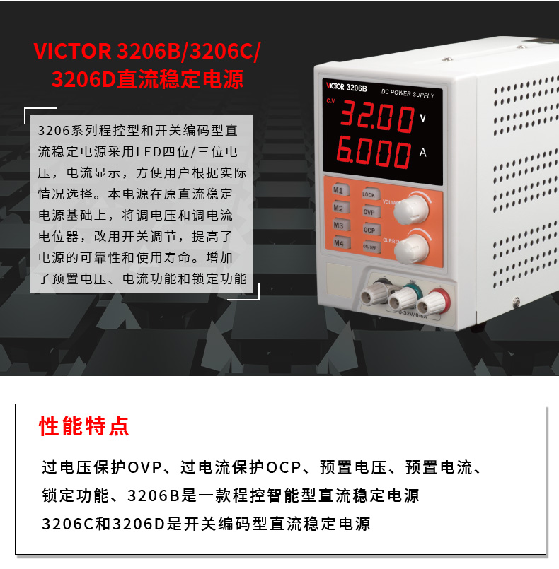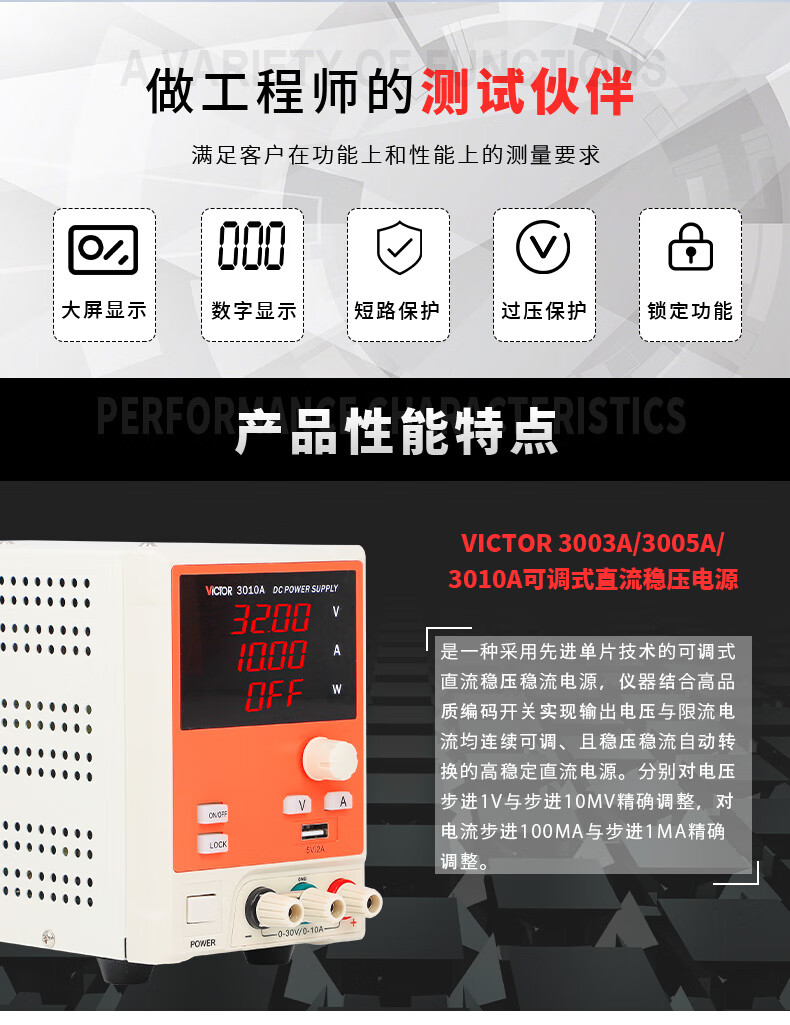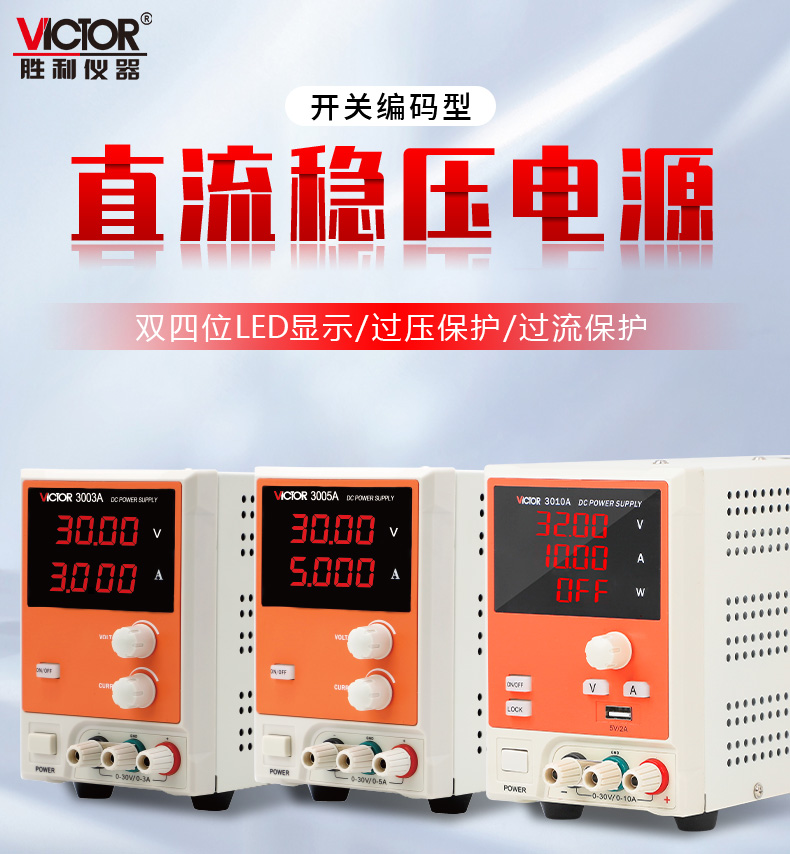 胜利仪器(VICTOR)直流稳压电源 开关数显电流表 32V/3A 高精度 手机维修电源 VC3003A 带USB输出