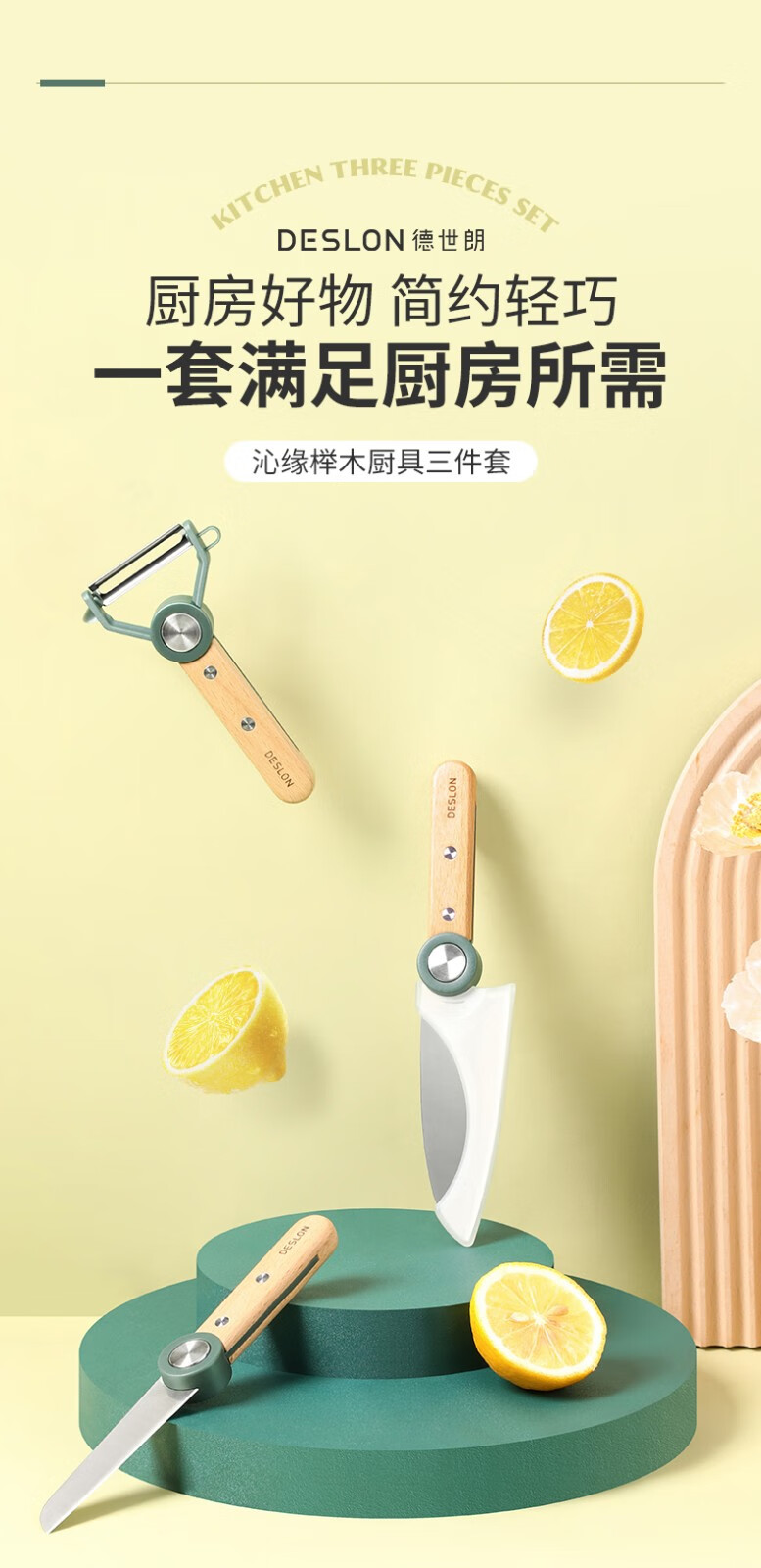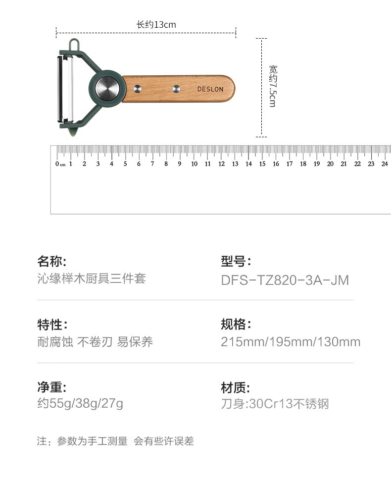 德世朗沁缘榉木厨具三件套 水果刀 刨丝器 刮皮刀 削皮器 三件套DFS-TZ820-3A-JM