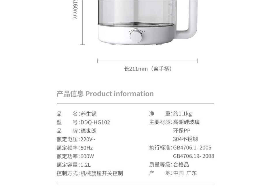 德世朗养生锅DDQ-HG102 1.2L