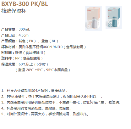 博堡 BXYB-300 PK/BL 筱雅保温杯