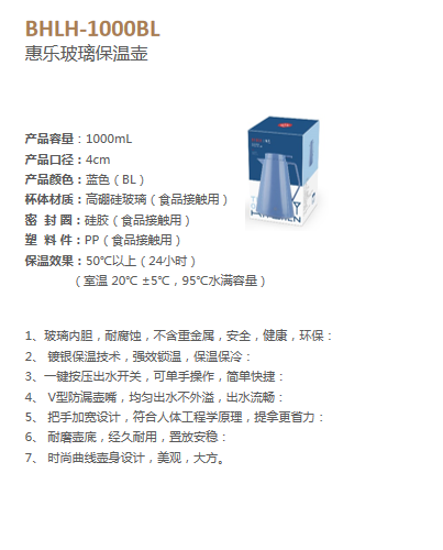 博堡 BHLH-1000BL 惠乐玻璃保温壶