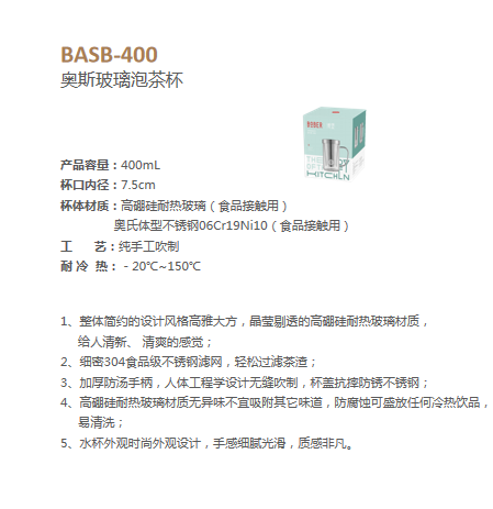 博堡 BASB-400 奥斯玻璃泡茶杯