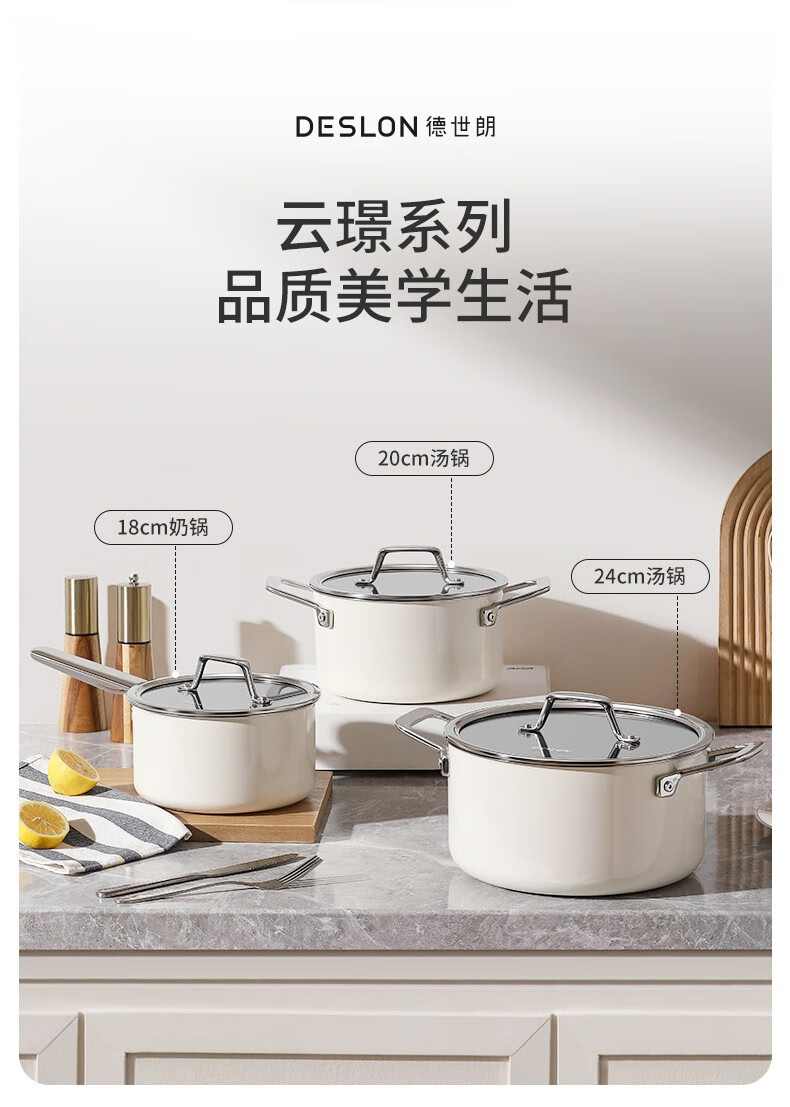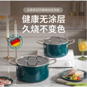 德世朗云璟汤锅 不锈钢珐琅锅圆形炖锅煲汤锅炖汤锅炖锅 20CM孔雀蓝 DP908-C20BU