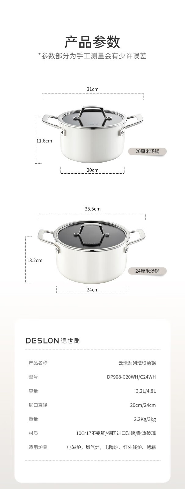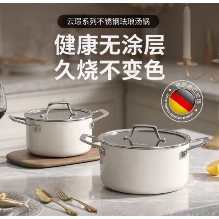 德世朗云璟汤锅 不锈钢珐琅锅圆形炖锅煲汤锅炖汤锅炖锅 24CM珍珠白 DP908-C24WH