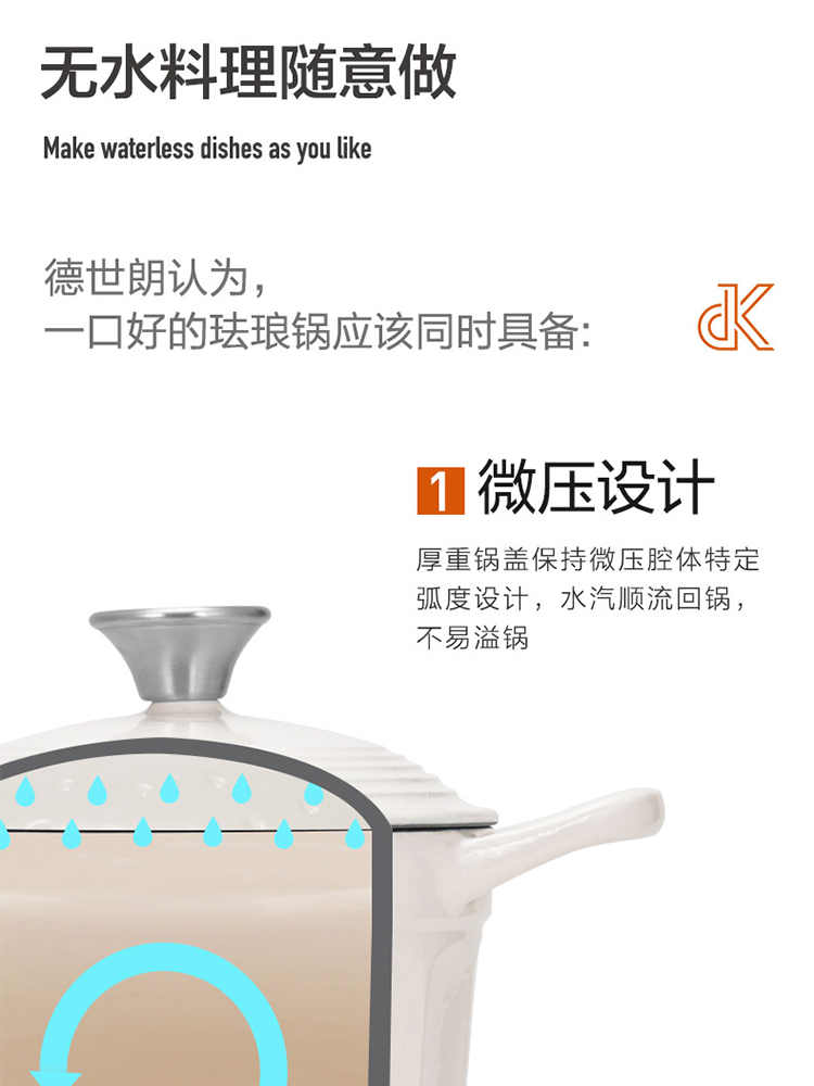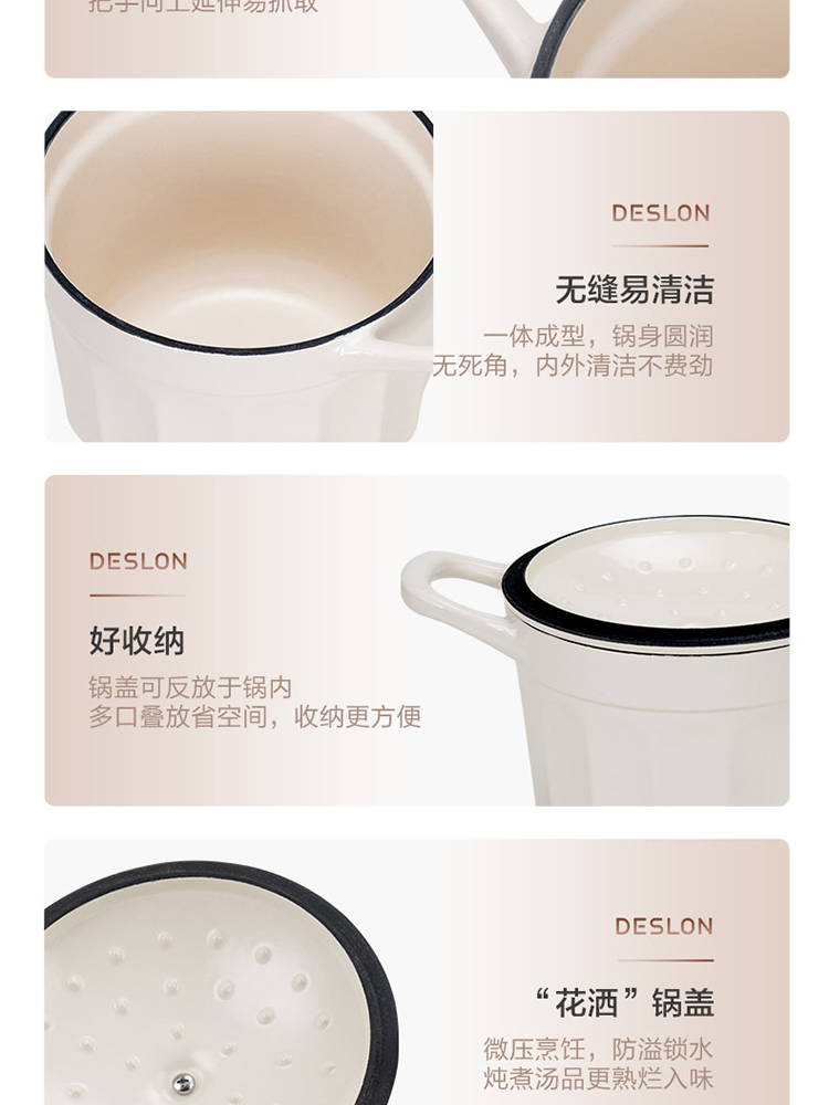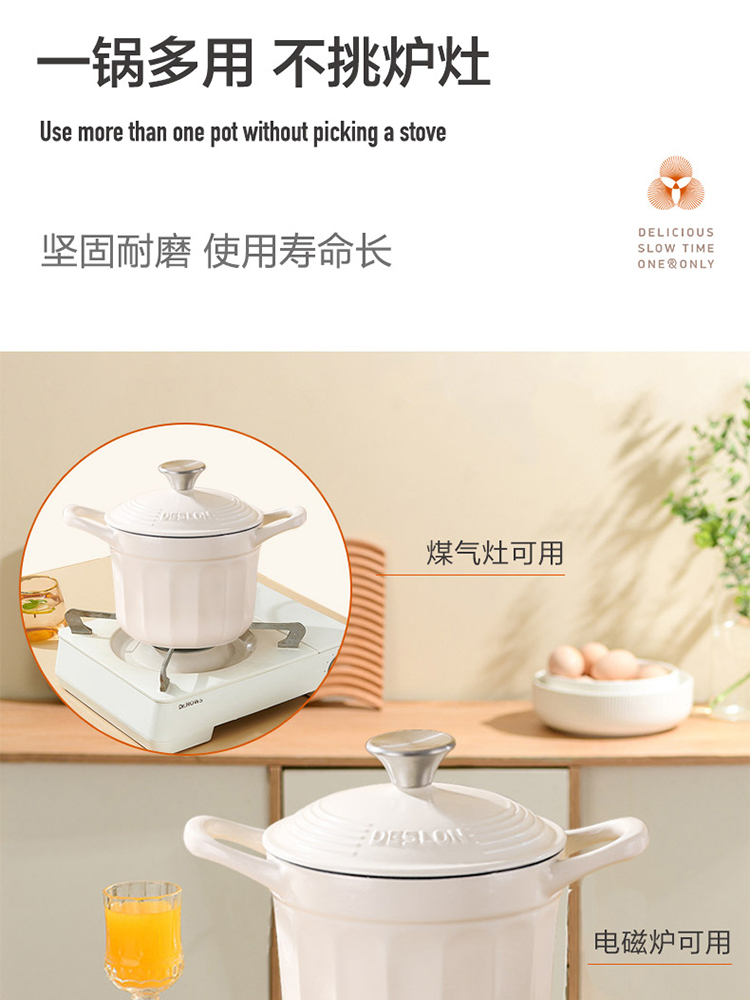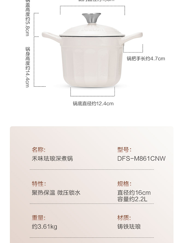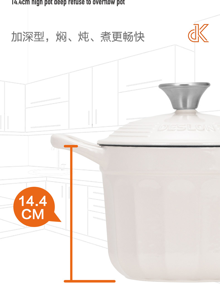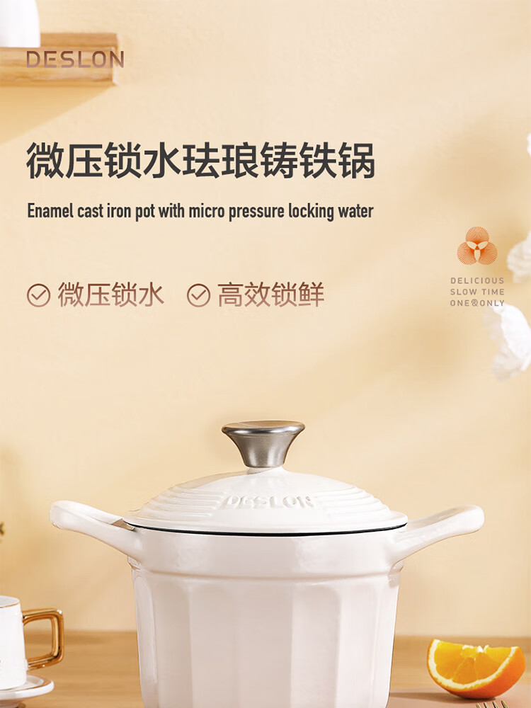 德世朗(DESLON) 珐琅锅铸铁锅深煮锅双耳炖锅焖煮锅迷你汤锅珐琅铸铁锅16cm带盖