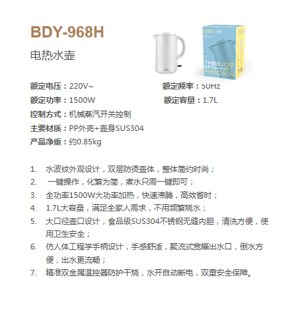 博堡 BDY-968H 电热水壶