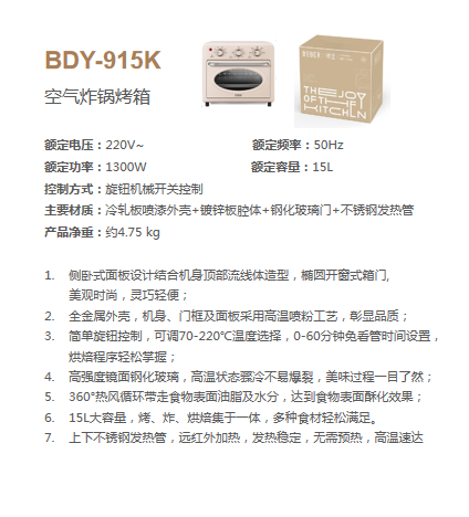 博堡 BDY-915K 空气炸锅烤箱